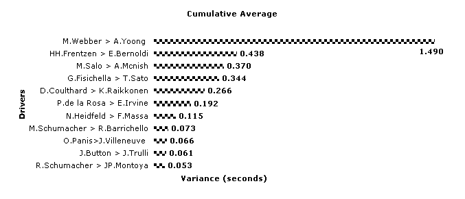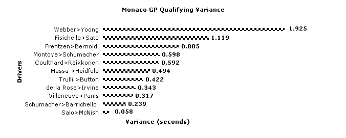 Who’d have thunk it? Ferrari are unbeatable. Williams haven’t got a chassis, just a magnificent engine. Juan Pablo can’t handle Monaco where that engine can’t compensate for arcade game drivers. At least, that’s what I thought. Wrong, wrong, wrong. I take some small measure of consolation from the knowledge that nobody, except perhaps Mrs Montoya snr, believed that he could do it. I’m still not sure how though. From Also Ran contender to Qualifying Hero in just one round, JPM has turned the wick up and while one swallow does not a summer make (to quote my esteemed colleague in an earlier article) he has made a significant impression on me today. In Monaco Bibendum came through and delivered big time. For the rest Michael did his job and pushed the Ferrari as hard as it could be pushed and Rubens didn’t disgrace himself in 5th. David pipped Kimi with a brilliant drive but I don’t back down from my stance that Kimi is the quicker driver, just not on this day. Jarno proved that he is still a brilliant qualifier and gave Jenson a lesson in car control. I really didn’t think he would do it, given his performances of late and the strong efforts of Jenson in recent events. Surprises? JPM and DC, obviously. McNish was outstanding, putting in what was in my opinion, his most competitive drive of the year. No surprises though from Mark Webber. Mark has been the single outstanding performer this season and to put the Minardi in front of Pedro and Eddie Irvine, who usually does well here, was a superb effort. Frankly I thought Mark would probably upstage a few Honda powered cars as well but it wasn’t to be. Villeneuve was credible, Heidfeld disappointed (but I did at least get Massa right) and Fisichella, Salo and Frentzen delivered. The Monaco GP 'Also Ran' Award. The Also Ran is awarded to the driver who gets his talent and aspirations most mixed up. Quiet achievers are unlikely to win one, even if they fail to deliver on the day. The award is set at a much more deserving level, and today we have to search for a worthy recipient. Eddie failed (again). Nick was beaten by a very fast Felipe. Alex, well, Alex wasn’t lucky enough to have Mark stop on his outlap but at least he did manage to qualify eventually. All these drivers have won awards in the past. Eddie was distracted by the media attention he got while criticising Ferrari, Nick seems to be cursed with very quick team mates and is starting his slide back down the table of wins against Massa. Few teams will be able to claim two wins by a driver in this season. Few teams also have two drivers who both claim to be supreme, results not withstanding. Williams has two such drivers, both are adept at putting the second best car where any decent driver should, in the second best spot, with the occasional lapse or effort. Today saw both a lapse and an effort. Ralf sees himself as a potential world champion and has shown patches of talent. Just not this time. In the ongoing battle between the two Williams drivers Ralf struck the early blows, Juan Pablo came back with a vengeance, slipped back a bit and Ralf …… couldn’t follow through. Ralf, world champions don’t lose real races by half a second, even drivers who are the brothers of world champions. Wannabe world champions however, as you know, do win Also Ran awards for doing so. Congratulations Ralf Schumacher, Monaco’s Also Ran and our first dual award winner. The Monaco GP Qualifying Heroes 1. Mark Webber, 2. Giancarlo Fisichella, 3. Heinz Harald Frentzen Want to send a comment to the Quali-flyer ? Click here