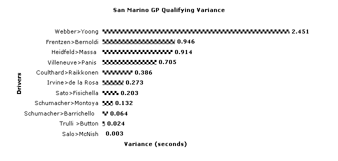 Of the ‘A’ drivers only Fisichella, Coulthard and Yoong failed to beat their partners. Fisichella had problems, Coulthard had an engine change, Yoong had to rely on a lack of talent.